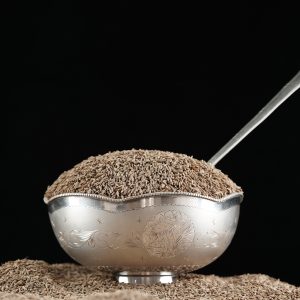 Cumin is native to Egypt and has been cultivated in the Middle East, India, China and Mediterranean countries for millennia. Throughout history, cumin has played an important role as a food and medicine and has been a cultural symbol with varied attributes. A small slender glabrous herbaceous annual, of the parsley family. It usually reaches 25 cm (some varieties can be double this height) and tends to droop under its own weight. The blue-green Finest Grains-Cumin Seeds linear leaves are finely divided, and the white or pink flowers are borne in small compound Umbels. A hot climate is preferred, but it can be grown in cooler regions if started under glass in spring. A sandy soil is best; when the seedlings have hardened, transplant carefully to a sunny aspect, planting out 15 cm apart. The plants bloom in January – February. The seeds are normally ready four months after planting. Cut the plants when the seeds turn to brown, thresh and dry like the other Umbelliferae. Cumin is used mainly where highly spiced foods are preferred. It is an ingredient of most curry powders and many savory spice mixtures, and is used in stews, grills-especially lamb and chicken dishes. It gives bite to plain rice, and to beans and cakes. Small amounts can be usefully used in aubergine and kidney bean dishes. Cumin is essential in spicy Mexican foods such as chile con carne, casseroled pork and enchiladas and kidney bean dishes. In the Middle East, it is a familiar spice for fish dishes, grills, stews and flavors of couscous-semolina steamed over meat and Vegetables, national dish of Morocco. Cumin seeds consist of moisture 6.2 percent, protein 17.7 percent, fat 23.8 percent, crude fiber 9.1 percent, carbohydrates 35.5 percent and mineral matter 7.7 percent per 100 grams. Their mineral and vitamin contents are calcium, iron, phosphorus, potassium, thiamine, sodium, riboflavin, niacin, vitamin C and A.Uses